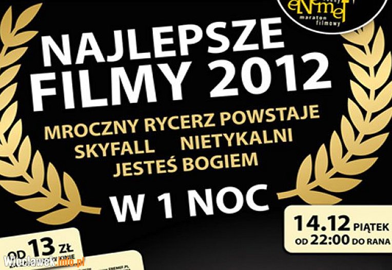 Najlepsze Filmy 2012 to propozycja dla tych, którzy cenią sobie kino na najwyższym poziomie, a także nie pogardzą doskonałą rozrywką. To także świetna okazja żeby nadrobić kinowe zaległości. Cztery tytuły, które zostaną zaprezentowane tej nocy to najlepsze filmy, które mogliśmy oglądać w mijającym roku w kinach. Będzie zabawnie, refleksyjnie, a także bardzo emocjonująco - mieszanka w sam raz na ENEMEF na tydzień przed końcem świata. ;) W repertuarze znalazły się: "Skyfall", "Jesteś Bogiem", "Mroczny Rycerzmpowstaje" oraz "Nietykalni".