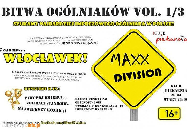 26 kwietnia o godzinie 21.00 w Klubie Piekarnia odbędzie się impreza pn. "Bitwa Ogólniaków". Wstęp od 16stego roku życia.