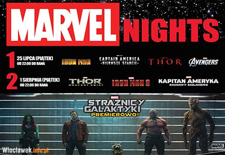 Marvel Nights to maraton z najpopularniejszymi i najbardziej ekstrawaganckimi superbohaterami współczesnej popkultury. Podczas tego seansu na ekranie pojawią się wszystkie najważniejsze postaci uniwersum: Iron Man, Thor, Hulk, Czarna Wdowa, Kapitan Ameryka.