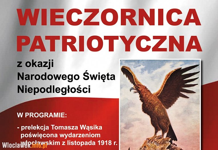 Muzeum Ziemi Kujawskiej i Dobrzyńskiej we Włocławku zaprasza w dniu 12 listopada, o godz. 17.00, do Gmachu Głównego przy ul. J. Słowackiego 1a na wieczór artystyczno-historyczny z okazji Narodowego Święta Niepodległości.