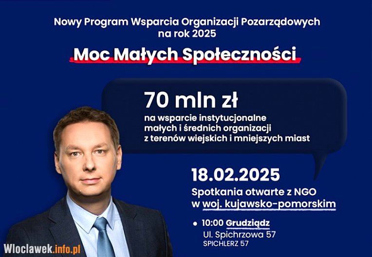 Minister do spraw Społeczeństwa Obywatelskiego Adriana Porowska oraz Podsekretarz Stanu w KPRM Marek Krawczyk serdecznie zapraszają przedstawicieli trzeciego sektora do udziału spotkaniach dotyczących nowego Rządowego Programu Wsparcia Organizacji Pozarządowych na rok 2025 – „Moc Małych Społeczności”.