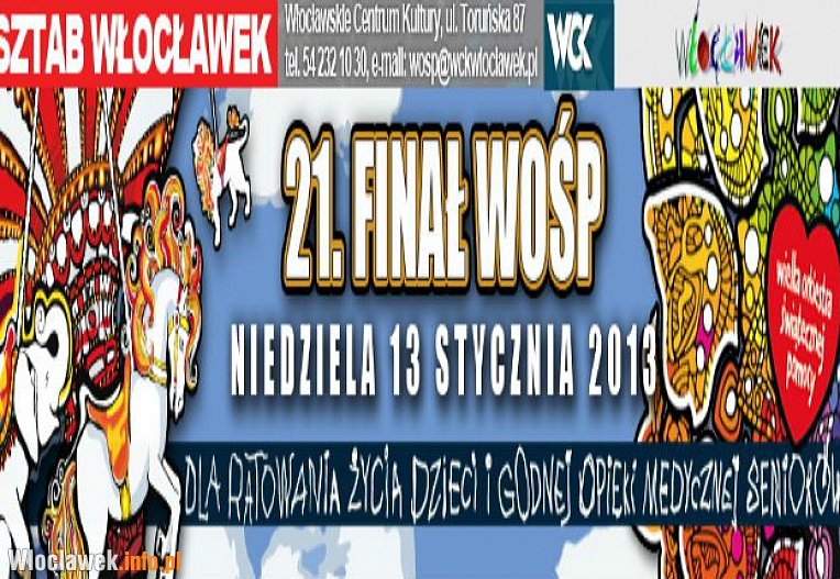 We Włocławskim Centrum Kultury mieści się Sztab XXI Finału Wielkiej Orkiestry Świątecznej Pomocy. Pieniądze zebrane w 21. Finale będą podzielone. Połowa zostanie wykorzystana na wsparcie terapii noworodka i niemowlaka, natomiast druga połowa na wyposażenie w sprzęt szpitali geriatrycznych i zakładów opiekuńczo-leczniczych.