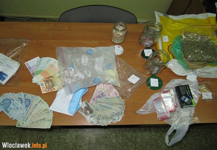W czasie prowadzonych działań na terenie Włocławka policjanci zwalczający przestępczość narkotykową uzyskali informację o tym, że w centrum miasta w jednej z kamienic mężczyzna wraz z kobietą mogą posiadać środki odurzające, które rozprowadzają na terenie miasta. Ww wtorek policjanci zatrzymali 39-letnią kobietą oraz 46-letniego mężczyznę. Podczas przeszukania mundurowi w pomieszczeniach strychowych znaleźli prawie 250 g amfetaminy, ponad 200 g marihuany. Część środków była już zapakowana w woreczki i przygotowana do dalszego rozprowadzania. Z takiej ilości narkotyków można by przygotować kilkaset „działek”. W mieszkaniu kryminalni znaleźli także elektroniczną wagę służącą do porcjowania narkotyków, czyste woreczki „strunówki” i zabezpieczyli pieniądze w wysokości 30 tys. złotych w tym ponad 5 tys. euro. Kobieta i mężczyzna zostali osadzeni w policyjnym areszcie.