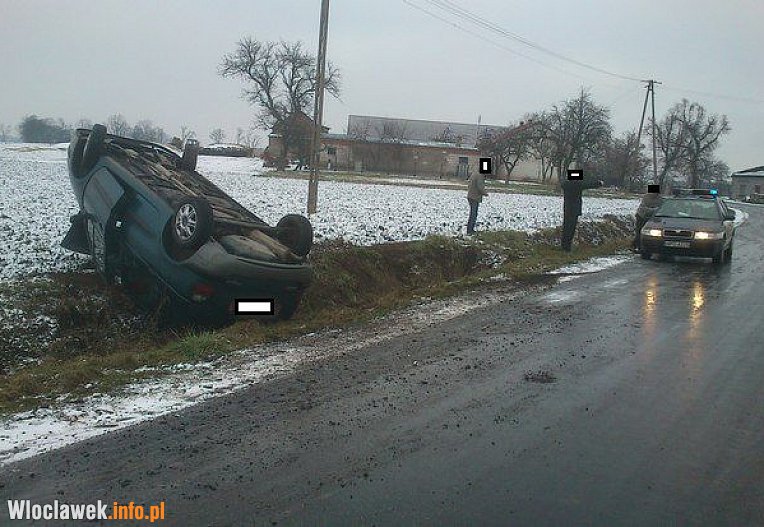 Do ostatniego zdarzenia doszło w Szewcach. W godzinach rannych, kierująca renaultem mieszkanka województwa wielkopolskiego, nie dostosowała prędkości do warunków panujących na drodze. Jej auto wpadło w poślizg, zjechało do rowu a następnie dachowało. Kobieta została zabrana na obserwację do szpitala.