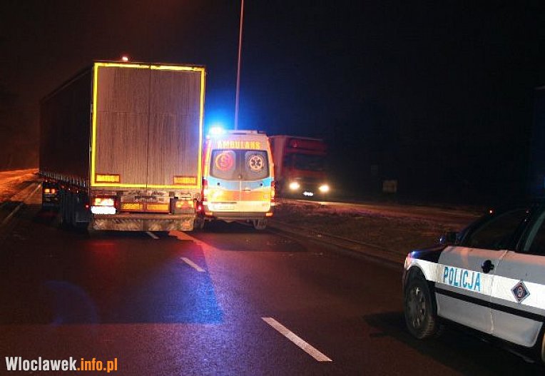 Włocławscy policjanci pod nadzorem prokuratora wyjaśniają okoliczności wczorajszego tragicznego wypadku drogowego na krajowej "jedynce". Pieszy wbiegł wprost pod koła ciężarówki i zginął na miejscu.