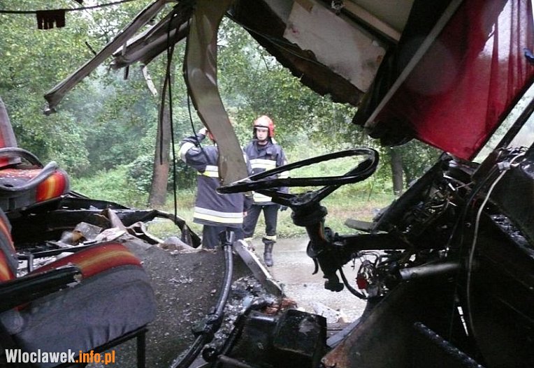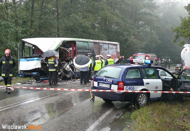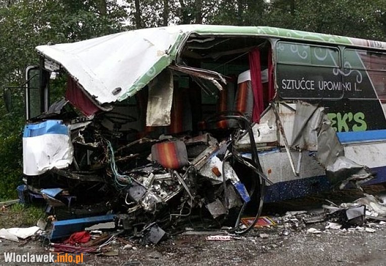 Autobusem podróżowało około 20 pasażerów, byli to głównie młodzi ludzie jadący do szkół, W wyniku wypadku na miejscu zginął jeden mężczyzna, 7 osób zostało poszkodowanych, w tym kierowca, którego stan jest bardzo ciężki mówi kapitan Dariusz Politowski, rzecznik prasowy KM PSP we Włocławku.