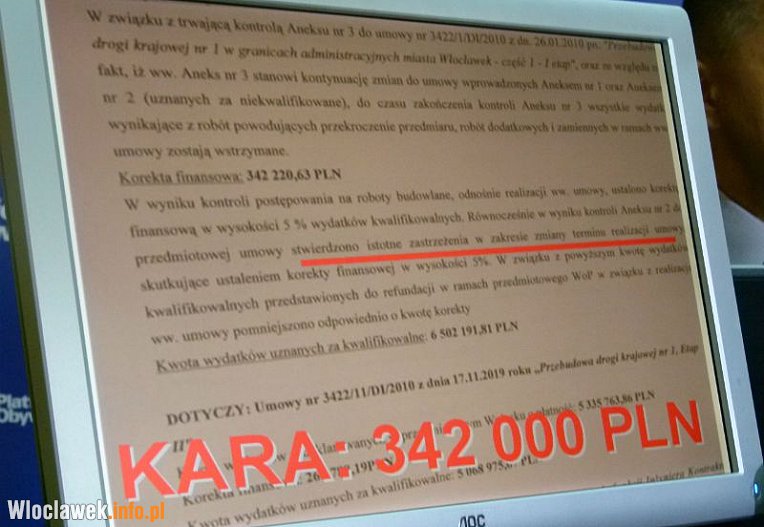 W środę temat DK 1 powrócił za sprawą przedstawicieli klubu radnych PO, którzy prezentowali dokumenty oraz zdjęcia ilustrujące stan jezdni, chodników i zjazdów. Sławomir Bieńkowski przypomniał, że w styczniu tego roku, na zapytanie senatora Andrzeja Persona, Ministerstwo Transportu odpowiedziało, że suma kar naliczonych na inwestycję przebudowa drogi krajowej nr 1 wyniosła 12,5 miliona złotych.
