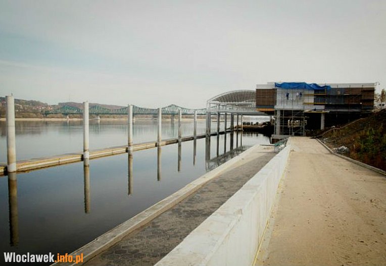 Coraz ciekawiej wygląda także przystań z przyciągającą uwagę platformą widokową z zadaszoną membraną, której fakturę dodatkowo podkreślą naturalne zmiany dobowego oświetlenia. Obecnie wykonawca realizuje też budowę mostku nad Zgłowiączką, który – nawiązując do formy i kolorystyki konstrukcji tarasu widokowego przy gmachu głównym – będzie stanowił „przedłużenie” promenady bulwarów.