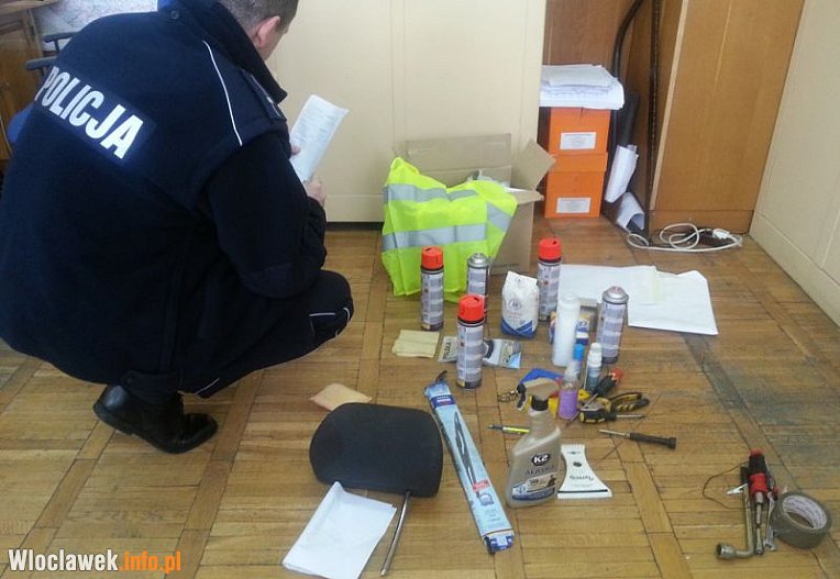 Postanowili sprawdzić co jest tego przyczyną. Okazało się, że 20-latek z zaparkowanych, niezamkniętych samochodów skradł różnego rodzaju przedmioty, które się w nich znajdowały. Były to m.in.klucze, taśmy, markery, kamizelka odblaskowa a nawet... zagłówek.