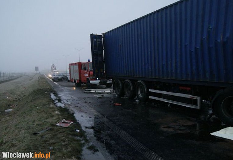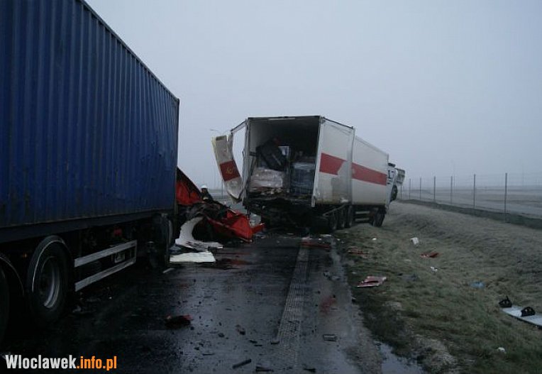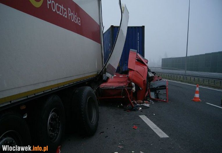 Kierujący pojazdem ciężarowym marki DAF najprawdopodobniej zasnął za kierownicą, zjechał na prawą stronę i uderzył w bariery ochronne, a następnie w stojący na prawym pasie ruchu ciężarowe iveco. Na skutek zderzenia kierowca samochodu DAF został zakleszczony w kabinie, skąd przy użyciu narzędzi hydraulicznych wydobyli go strażacy. 23-latek został odwieziony do szpitala.