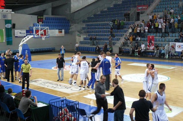 Poniedziałek, pogoda nie rozpieszcza, pod Halą Mistrzów typowy dla meczowego dnia..
