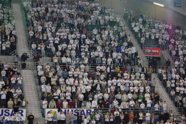 Poniedziałek, pogoda nie rozpieszcza, pod Halą Mistrzów typowy dla meczowego dnia..
