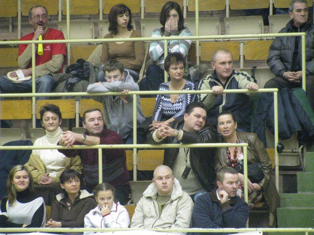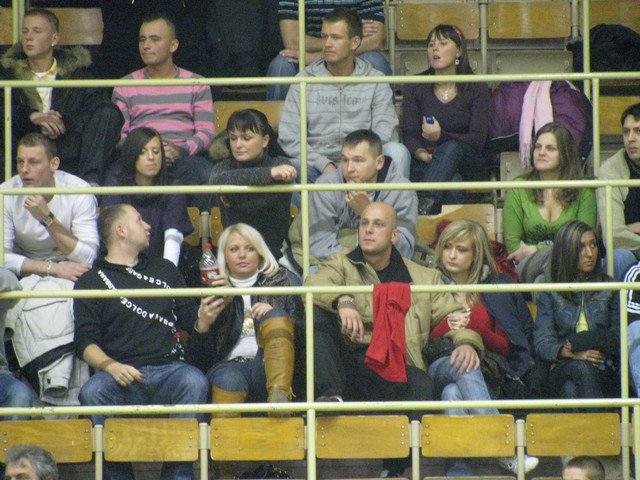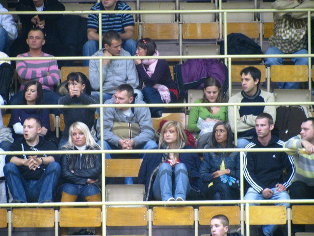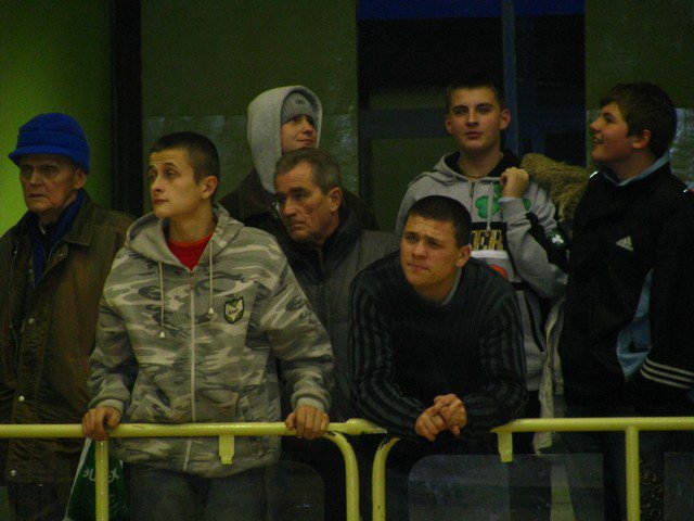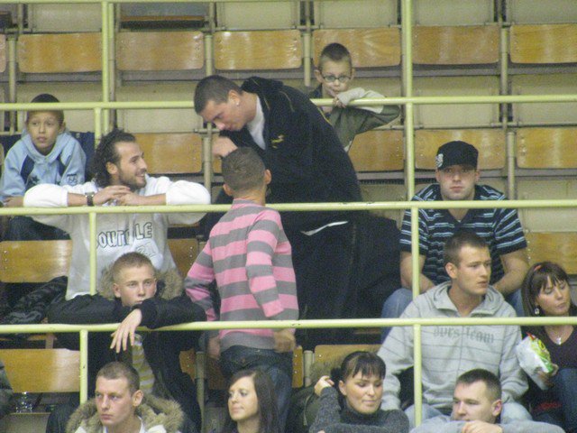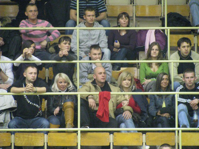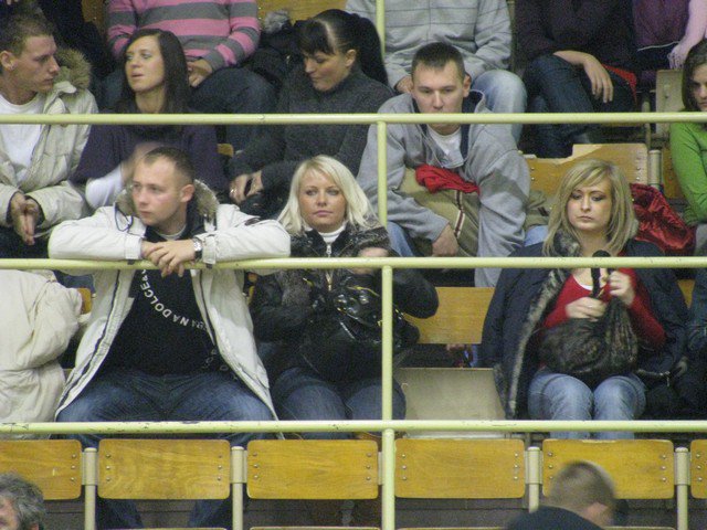 Poniedziałek, pogoda nie rozpieszcza, pod Halą Mistrzów typowy dla meczowego dnia..