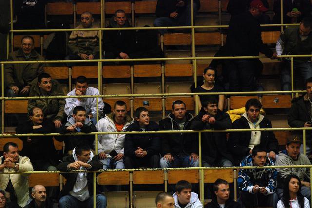 Poniedziałek, pogoda nie rozpieszcza, pod Halą Mistrzów typowy dla meczowego dnia..
