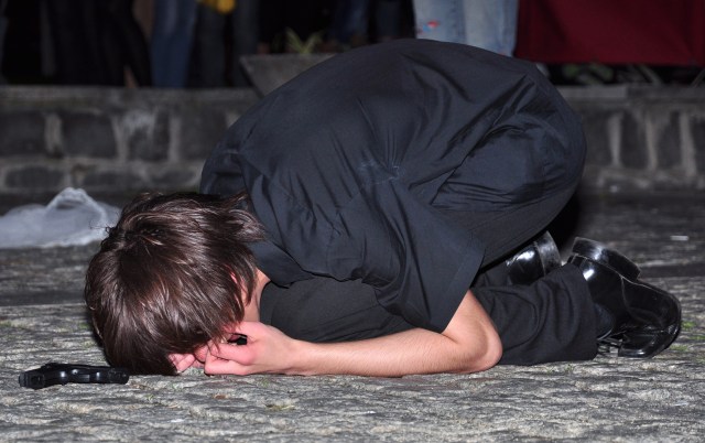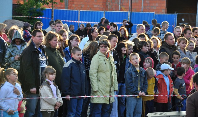 Poniedziałek, pogoda nie rozpieszcza, pod Halą Mistrzów typowy dla meczowego dnia..