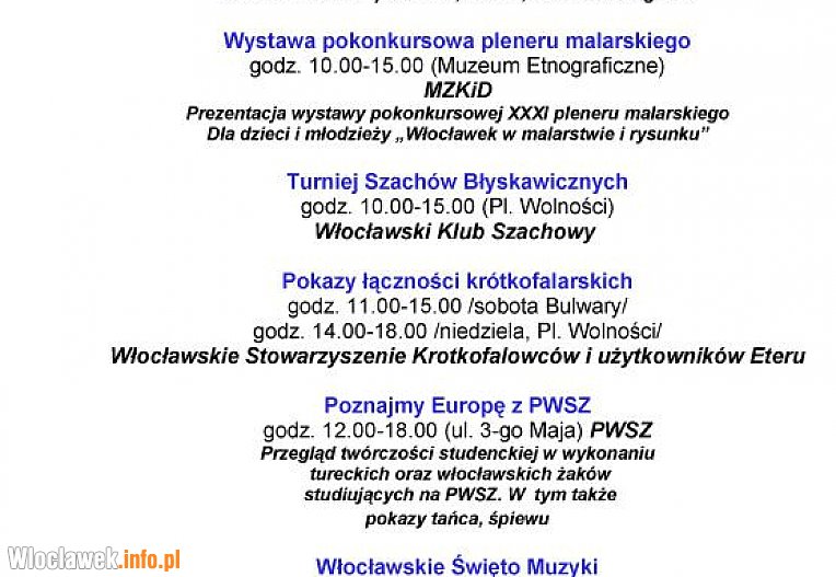 Poniżej przedstawiamy wykaz wszystkich imprez jakie będą towarzyszyć tegorocznym obchodom Dni Włocławka.