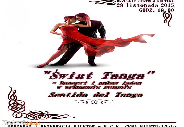 Brzeskie Centrum Kultury zaprasza w dniu 28.11.2015 r na Muzyczne Andrzejki. W tym roku zapraszamy państwa na  spektakl muzyczno-taneczny- Świat Tanga - w wykonaniu zespołu  Sentido del Tango w składzie: Piotr Kopietz - bandoneon, Mateusz Szemraj - gitara, Gabriela Machowska-Kopietz - fortepian.