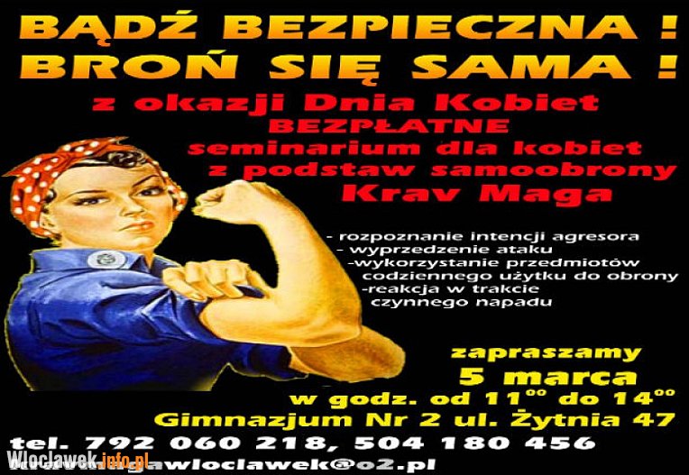 Z okazji Dnia Kobiet  Krav Maga Włocławek organizuje bezpłatne seminarium dla kobiet z podstaw samoobrony Krav Maga.