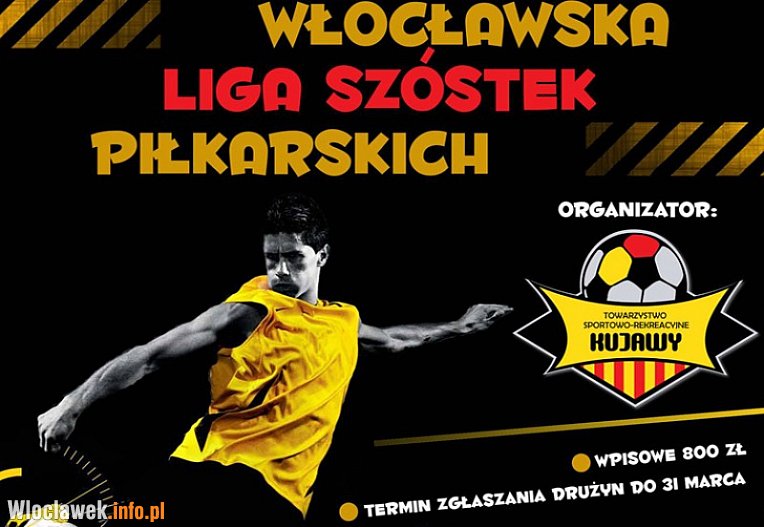 Zapraszamy do udziału we Włocławskiej Lidze Szóstek Piłkarskich. W organizowanej przez Towarzystwo Sportowo-Rekreacyjne Kujawy lidze może zagrać każdy. Początek rozgrywek zaplanowano na 4 kwietnia.