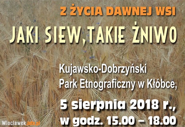Do tematu imprezy nawiązywać będą pokazy dawnych zajęć gospodarskich – koszenia, wiązania i ustawiania snopków, czyszczenia zboża, produkcji mąki, kaszy, oleju oraz wyrobu masła. Przygotowany zostanie pokaz ustawiania do pracy wiatraka „koźlaka”. Nie zabraknie pieśni, tańców i zabaw kujawskich w wykonaniu dziecięcego Zespołu Pieśni i Tańca „Ziemia Kujawska” z Chocenia oraz Zespołu Ludowego „Radojewiczanie” z Radojewic. Zobaczymy rzemieślników, którzy pokażą zapomniane już dzisiaj zawody — kowala, garncarza, plecionkarza.