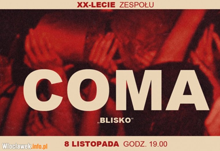 To pierwszy koncert COMY we Włocławku. Bilety: do 15.10.2018 po 50 zł parter i 60 zł trybuna, od 16.10.2018 do 8.11.2018 po 65 zł i 75 zł.
