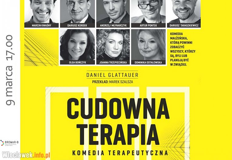 Państwo Dorek są doświadczonym małżeństwem, które – jak to w życiu – ma za sobą dobre i złe chwile. Spotykamy ich, kiedy są wypaleni i znudzeni, a zarazem groteskowi w swoich małżeńskich kłótniach o drobiazgi. Doszli do wniosku, że nie pozostaje im nic innego, jak się rozstać. Przed ostateczną decyzją wybrali się jednak do wybitnego psychoterapeuty, by dać sobie ostatnią szansę na uratowanie małżeństwa. Czy za pomocą różnych ćwiczeń terapeutycznych uda się pojednać parę, która potrafi urządzać sobie niezłe piekło? Czy specjalista znajdzie sposób, by małżonkowie zrozumieli, jak wiele ich łączy, by zaczęli ze sobą współpracować i słyszeć się wzajemnie? I czy przypadkiem terapeuta po spotkaniu z taką parą sam nie będzie potrzebował pomocy? Odpowiedzi znajdą Państwo w najnowszej inscenizacji komedii austriackiego dramatopisarza Daniela Glattauera „Cudowna terapia”. Czekają Was błyskotliwe dialogi, zabawne życiowe sytuacje i trzy wspaniałe kreacje aktorskie.