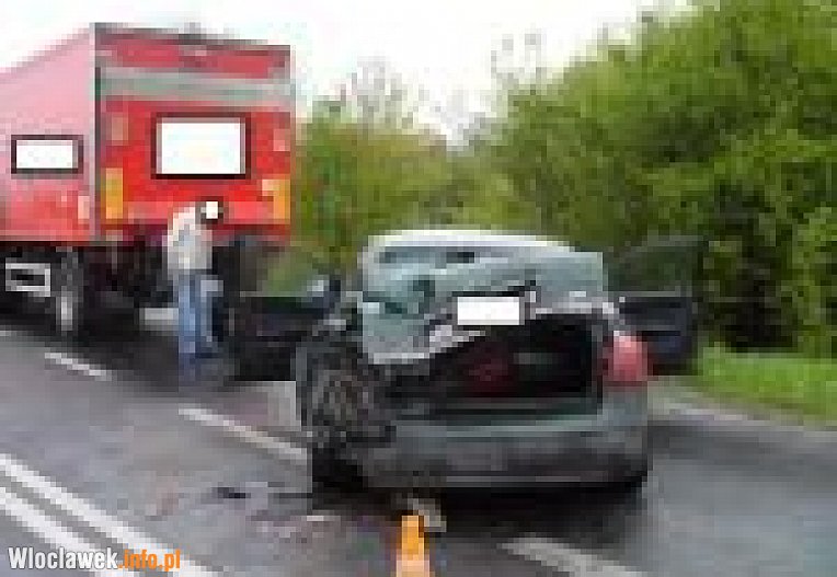 Na skrzyżowaniu dróg krajowej z wojewódzką  kierowca jadący w kierunku Włocławka ciężarową scanią z naczepą zatrzymał się na światłach. Za nim zatrzymało się osobowe audi. Jadący za nimi scanią z cysterną 26-latek, chciał skręcić w lewo w kierunku Dobrego. Manewr omijania wykonał tak niefortunnie, że zahaczył przyczepą o audi. Na skutek czego osobówka z duża siłą uderzyła, w stojący przed nią samochód ciężarowy. Pomimo znacznych uszkodzeń auta osobowego, kierujący nią 30-latek nie odniósł obrażeń.