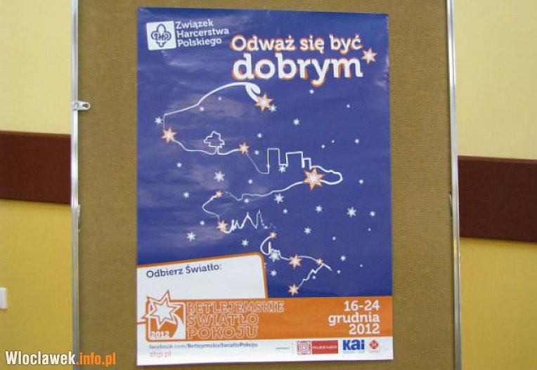 Płomień rozpalony w Grocie Narodzenia w Betlejem trafi do rodzin, szkół, kościołów, urzędów i szpitali. Włocławska „droga” betlejemskiego światełka rozpoczęła się we wtorek w Klubie WCK „Stara Remiza”.Tegoroczna akcja dzielenia się płomieniem odbywa się pod hasłem „Odważ się być dobrym”.