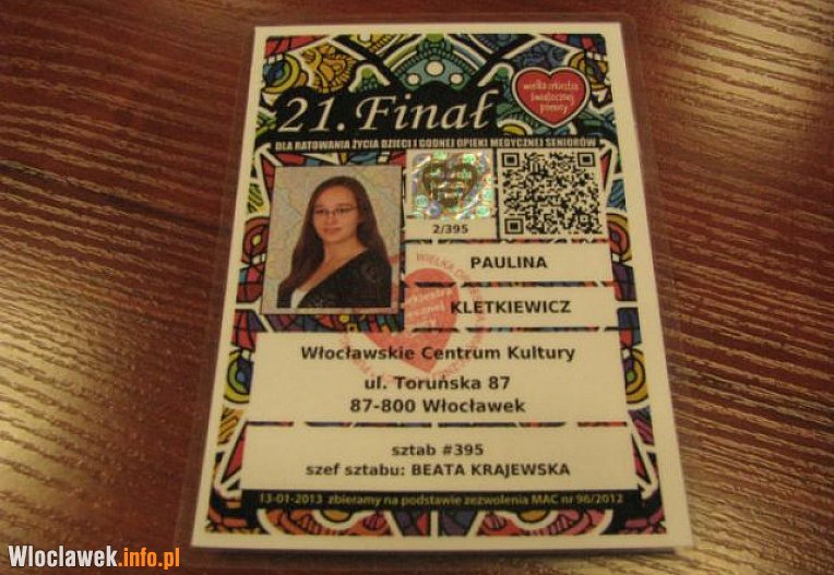 O tym, jak będzie przebiegał finał akcji i o imprezach, które już się zaczęły, poinformowano podczas konferencji prasowej. Beata Krajewska, szefowa włocławskiego sztabu WOŚP prezentowała aktualnie obowiązujące identyfikatory i puszki. Zwracajmy uwagę na to, kto zbiera pieniądze, czy ma identyfikator. Nasi wolontariusze, po uprzednim przeszkoleniu, będą kwestować od godziny 8.00 rano do godziny 16.00, czyli do zapadnięcia zmroku. Dzięki wielu instytucjom będą mogli liczyć na gorącą herbatę, a także na bezpieczny przejazd 5 samochodami "Taxi za uśmiech" wyjaśniała Krajewska.