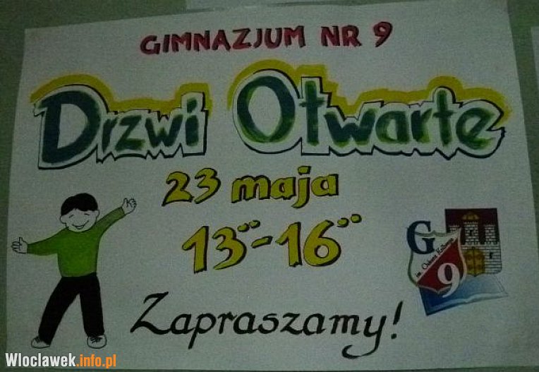 23 maja Gimnazjum nr 9 zorganizowało dzień otwartych drzwi, podczas którego uczniowie klas szóstych mogli zapoznać się z ofertą szkoły. Dla gości przygotowano - cieszącą się wielkim zainteresowaniem - kolorową i odlotową lekcję chemii, pokaz ratownictwa, zajęcia sportowe, odwiedziny w multimedialnej bibliotece oraz biesiadę dla mam połączoną z występami gimnazjalistów.
