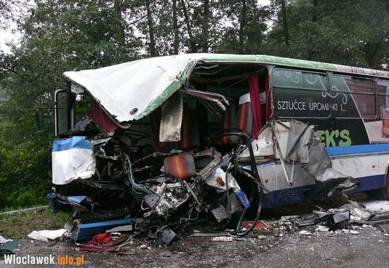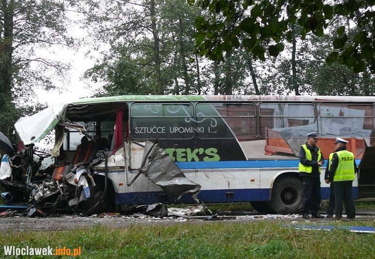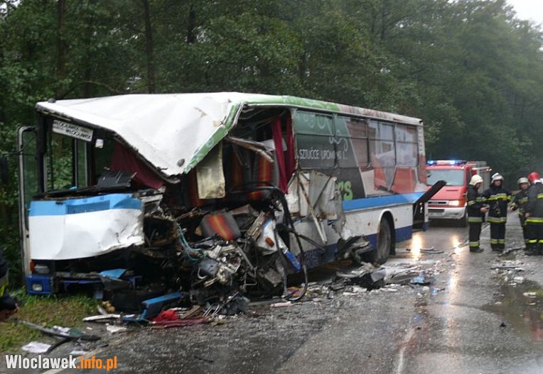 Autobusem podróżowało około 20 pasażerów, byli to głównie młodzi ludzie jadący do szkół, W wyniku wypadku na miejscu zginął jeden mężczyzna, 7 osób zostało poszkodowanych, w tym kierowca, którego stan jest bardzo ciężki mówi kapitan Dariusz Politowski, rzecznik prasowy KM PSP we Włocławku.