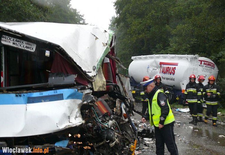 Do wypadku doszło na drodze 62 pomiędzy Włocławkiem a Brześciem Kujawskim. Na łuku drogi zderzyły się czołowo autobus byłego PKS i samochód ciężarowy z naczepą typu silos, która na szczęście nie przewoziła żadnych niebezpiecznych materiałów.