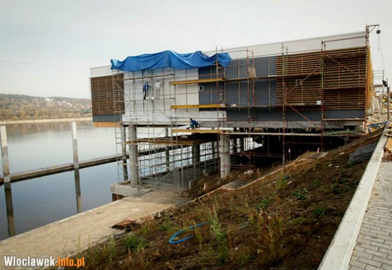 Coraz ciekawiej wygląda także przystań z przyciągającą uwagę platformą widokową z zadaszoną membraną, której fakturę dodatkowo podkreślą naturalne zmiany dobowego oświetlenia. Obecnie wykonawca realizuje też budowę mostku nad Zgłowiączką, który – nawiązując do formy i kolorystyki konstrukcji tarasu widokowego przy gmachu głównym – będzie stanowił „przedłużenie” promenady bulwarów.