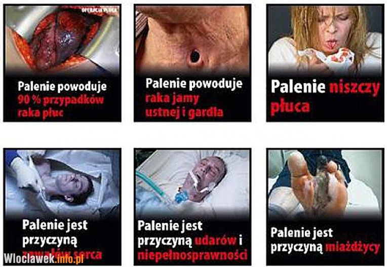 Przy każdym szokującym zdjęciu znajdzie się równie szokujący podpis - "paleniem możesz zabić swoje nienarodzone dziecko", "palenie jest przyczyną udarów i niepełnosprawności", czy "rzuć palenie, masz dla kogo żyć".