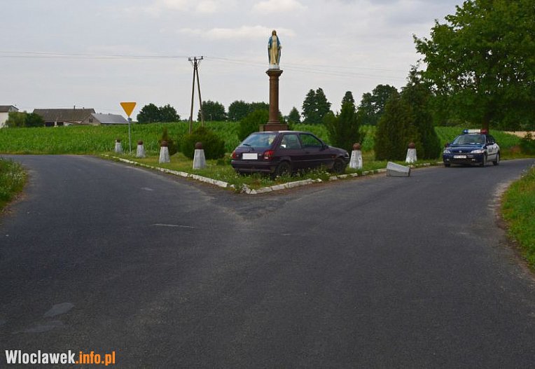 Policjanci podczas patrolu, zauważyli osobowego forda, zaparkowanego na skrzyżowaniu dróg. Uszkodzone auto stało obok figurki, przy której było zniszczone ogrodzenie. Mundurowi bardzo szybko namierzyli kierującego.