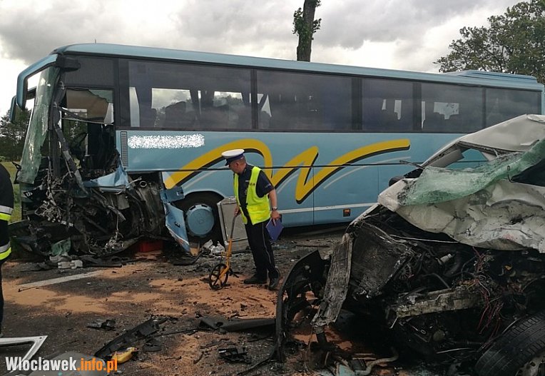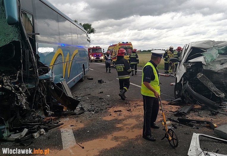 Wczoraj po południu doszło do tragicznego zderzenia samochodu dostawczego i autokaru wycieczkowego pod Włocławkiem. Kierowca busa poniósł śmierć na miejscu, natomiast kierowca autokaru i dziewięciu uczestników wycieczki trafiło do szpitali.