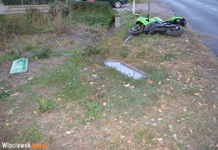 Nie zapanował nad mocnym motocyklem i ściął znak drogowy