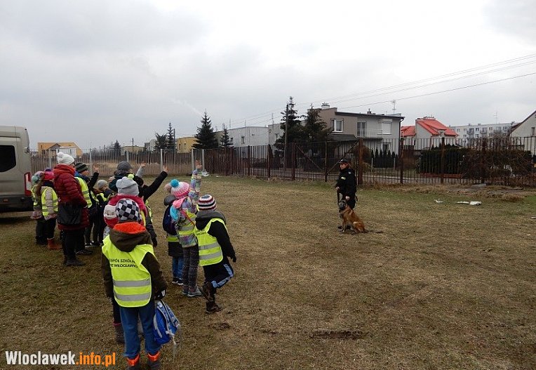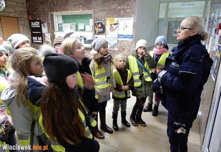 Włocławska komenda gościła dzieci uczestniczące w feriach organizowanych przez Szkołę Podstawową nr 7. W drodze do mundurowych mali goście ubrani byli w kamizelki odblaskowe.