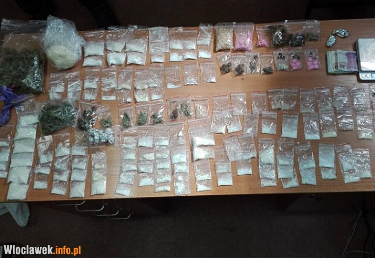 Policjanci pod wytypowanym adresem zastali 19-letniego mężczyznę. Tam przeszukali pomieszczenia, które zajmował. W pracy pomagał im pies, który bezbłędnie wskazywał miejsca, gdzie ukryte były różne substancje. Po sprawdzeniu ich policyjnym testerem i zważeniu policjanci zabezpieczyli ponad 75g marihuany, ponad 300g amfetaminy, prawie 50g metaamfetaminy, prawie 90 sztuk tabletek ekstazy oraz elektroniczną wagę. Dziewiętnastolatek został zatrzymany i osadzony w policyjnym areszcie.