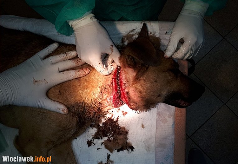 Łańcuch przeciął skórę, część powięzi oraz mięśni psa