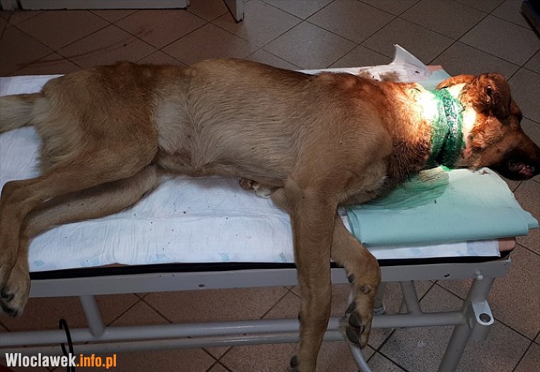 Do włocławskiego schroniska został przywieziony przez Straż Miejską pies z osiedla Kazimierza Wielkiego/Płocka. Zwierzak był bardzo wychudzony z werżniętym łańcuszkiem w szyję, który przecinał skórę, część powięzi oraz mięśni. Pies otrzymał natychmiastową pomoc i przeszedł operację, która uratowała mu życie.