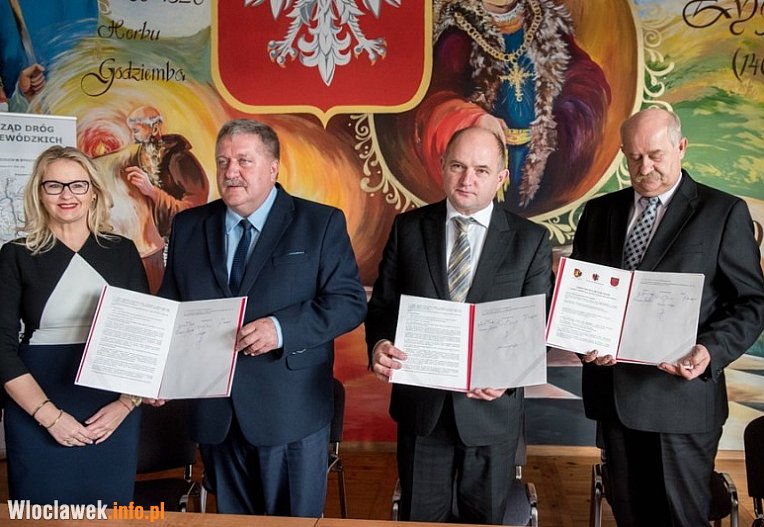 Podpisy pod porozumieniem złożyli dziś w Urzędzie Miasta w Lubrańcu marszałek Piotr Całbecki i wicemarszałek Sławomir Kopyść. Gminę Lubraniec reprezentował burmistrz Stanisław Budzyński, a powiat włocławski – starosta Kazimierz Kaca. Przy podpisaniu porozumienia obecni byli również członek zarządu Aneta Jędrzejewska oraz radny województwa Stanisław Pawlak. Trójstronne porozumienie pozwoli ująć zadanie w planie budżetu na przyszły rok oraz ogłosić przetarg na roboty budowlane.