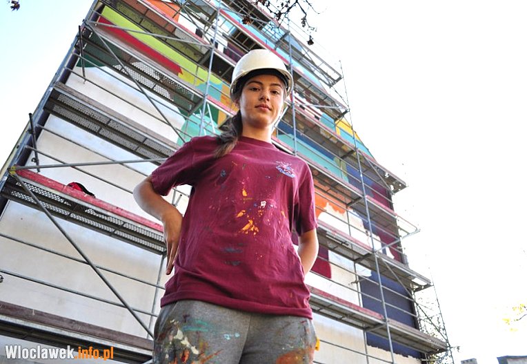 Malowidło zatytułowane "Włocławskie popołudnie" powstaje na ścianie bocznej budynku przy ul. Żabiej 14/16. Jeśli pogoda nie pokrzyżuje planów autorki, prace związane z wykonaniem muralu mają zakończyć się do 22 października.