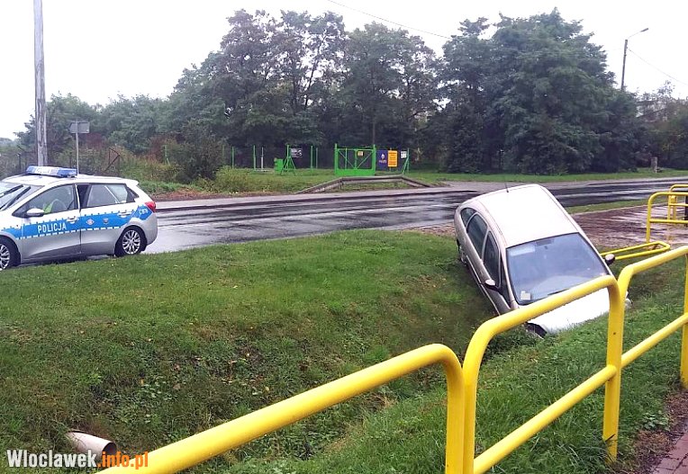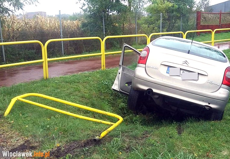 Citroen wypadł z drogi i łamiąc barierkę wpadł do rowu